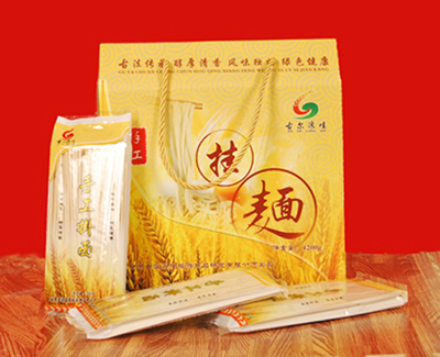 古浪手工拉面以河西旱地“红秃头”小麦粉为原料,配以特质精盐、天然饮用水调和。结合传统纯手工工艺,揉、压、行、搓、拉、晾制作而成,不掺任何添加剂。产品爽滑可口、高精强韧、风味悠长,它象征长久、和谐、安康。是历代宫廷之贡品,更是现代人居家、旅行、馈赠亲友之佳品。