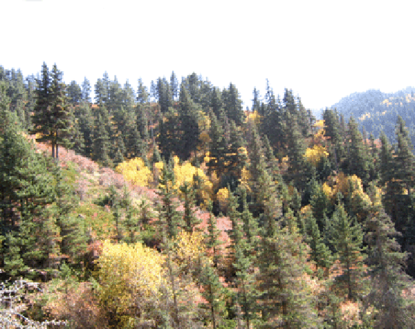 顺山坡有几条弯弯曲曲的羊肠小道,引领你依山而上,左边是一条深深的沟壑,沟底流淌着清澈的泉水,一直通向山顶。快到半山腰,山路突然一拐,先横穿两山相夹的深涧,然后再逐步上行。深涧里布满茂密的金腊梅、野刺梅、沙棘、黄白刺、降龙木、野蔷薇、野樱桃等灌木,灌木林中果实累累,有酸酒瓶、地飘儿、黑眼睛、红珍珠等,望着都令人心醉。登临山顶,极目四眺,但见山连山,岭叠岭,密林遮天,纵横交错。一幅幅五彩斑斓的画面进入眼帘,北面依山而立的山白杨、桦树、云杉等树种将山坡覆盖的严严实实,像一幅挂在天山的巨型水墨画。南面的阴坡上,生长着茂密的云杉、针叶松、油松、落叶松等常绿树种,还有葱茏有致的桧柏、桦、杨、楸等混交林。盛开的香柴花,一片连着一片,如熊熊燃烧的烈火,把半个山腰都染红了。绿色中夹杂着雪白的枇杷花,金色的腊梅,娇艳欲滴的月季……满山遍野之中,一朵朵红的、黄的、白的、紫的、蓝的花儿争奇斗艳,沁人心脾。远处,洁白的羊群仿佛散落的珍珠,点缀在墨绿色的山坡上。近处,乱石林立,层林尽染,姹紫嫣红,环境绮丽独特,空气清新可人。天上白云飘渺、苍鹰翱翔,地上山花烂漫、彩蝶飞舞,把一个寺洼山装点的五彩斑斓,如梦如幻。